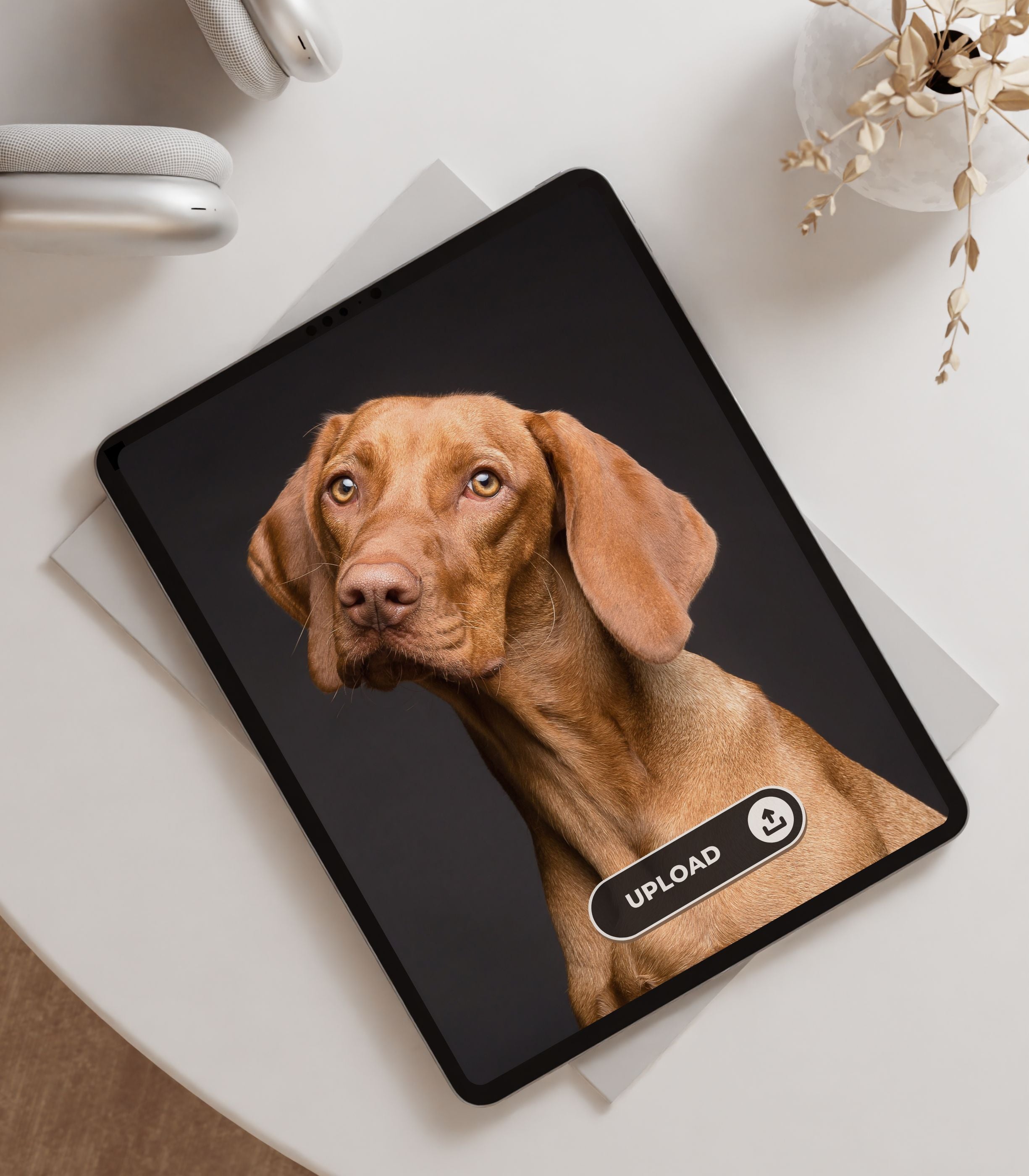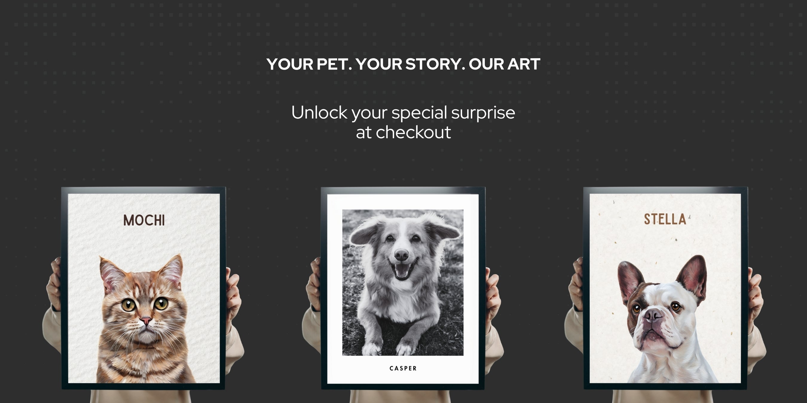 Personalize your portrait by adding your pet’s name, selecting a background color, choosing a unique art style, and picking the perfect frame and size.
